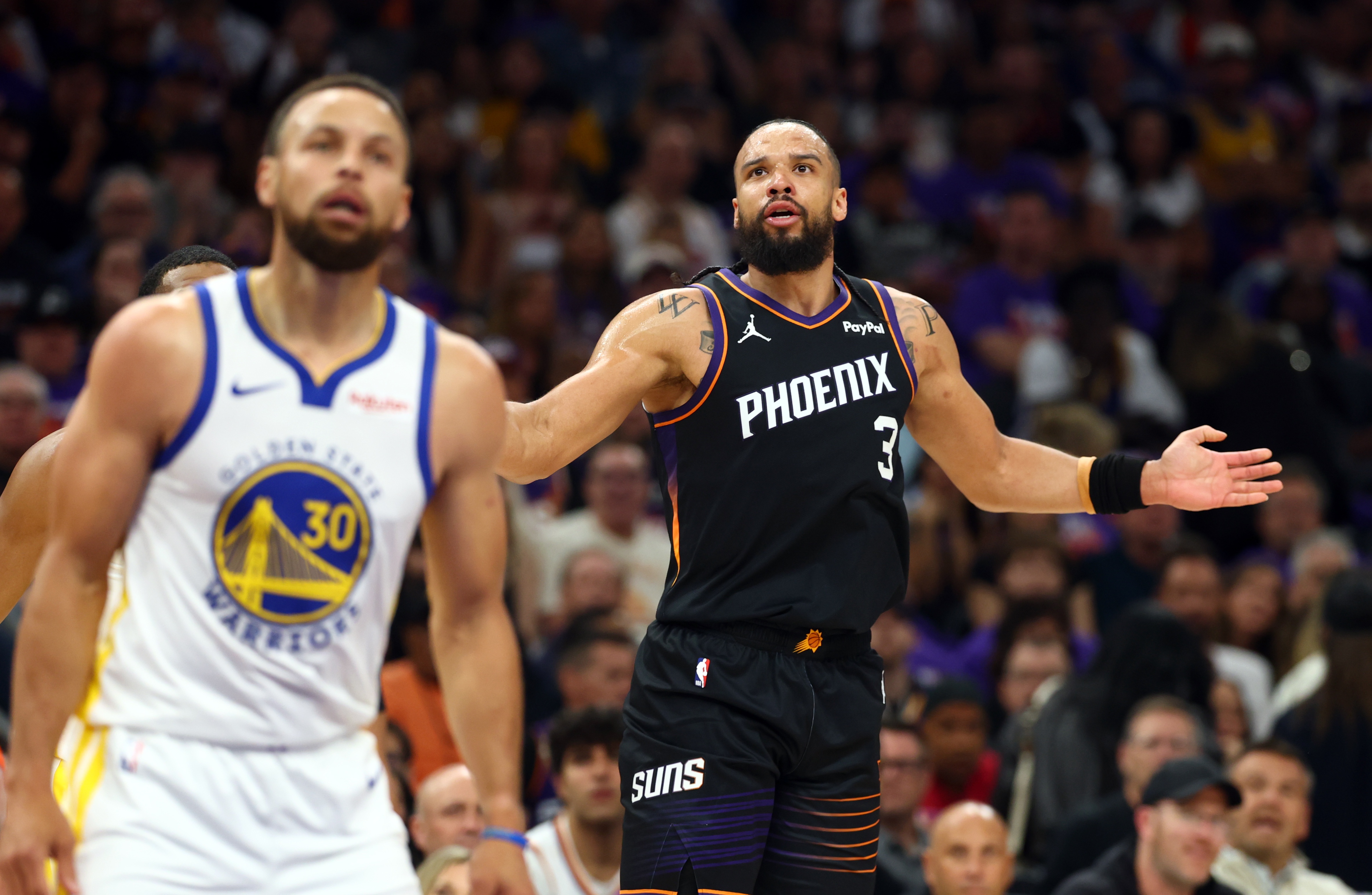 勇士混用盯人、联防、边线夹击,不让布克、杰伦·格林、狄龙舒服单挑。两队的防守思路恰好相反,太阳不夹库里,轻易不给其他人大空位机会;勇士则是在布克休息时,坚决夹击狄龙和杰伦·格林,考验太阳拼图球员的大空位抽奖效率。